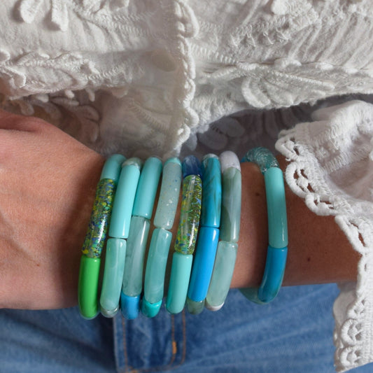 Bracelets joncs élastiques tons bleus