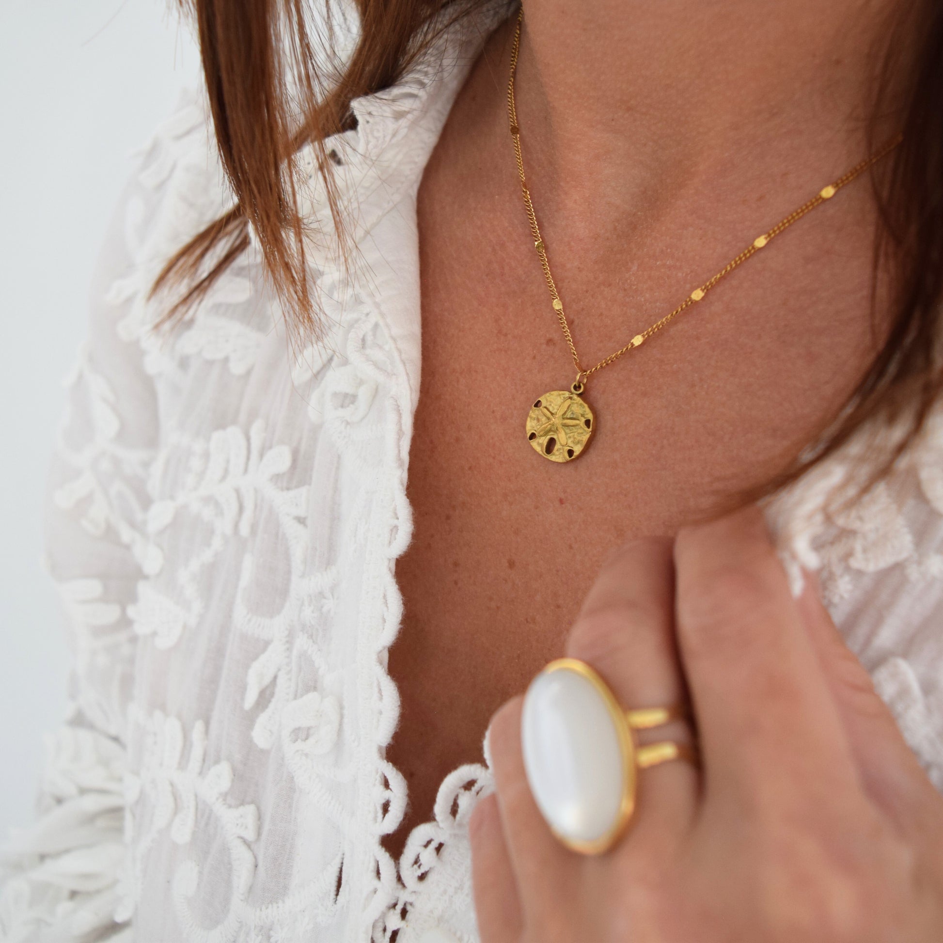 Collier composé d'une chaîne avec un pendentif médaillon étoile de mer 17x15mm