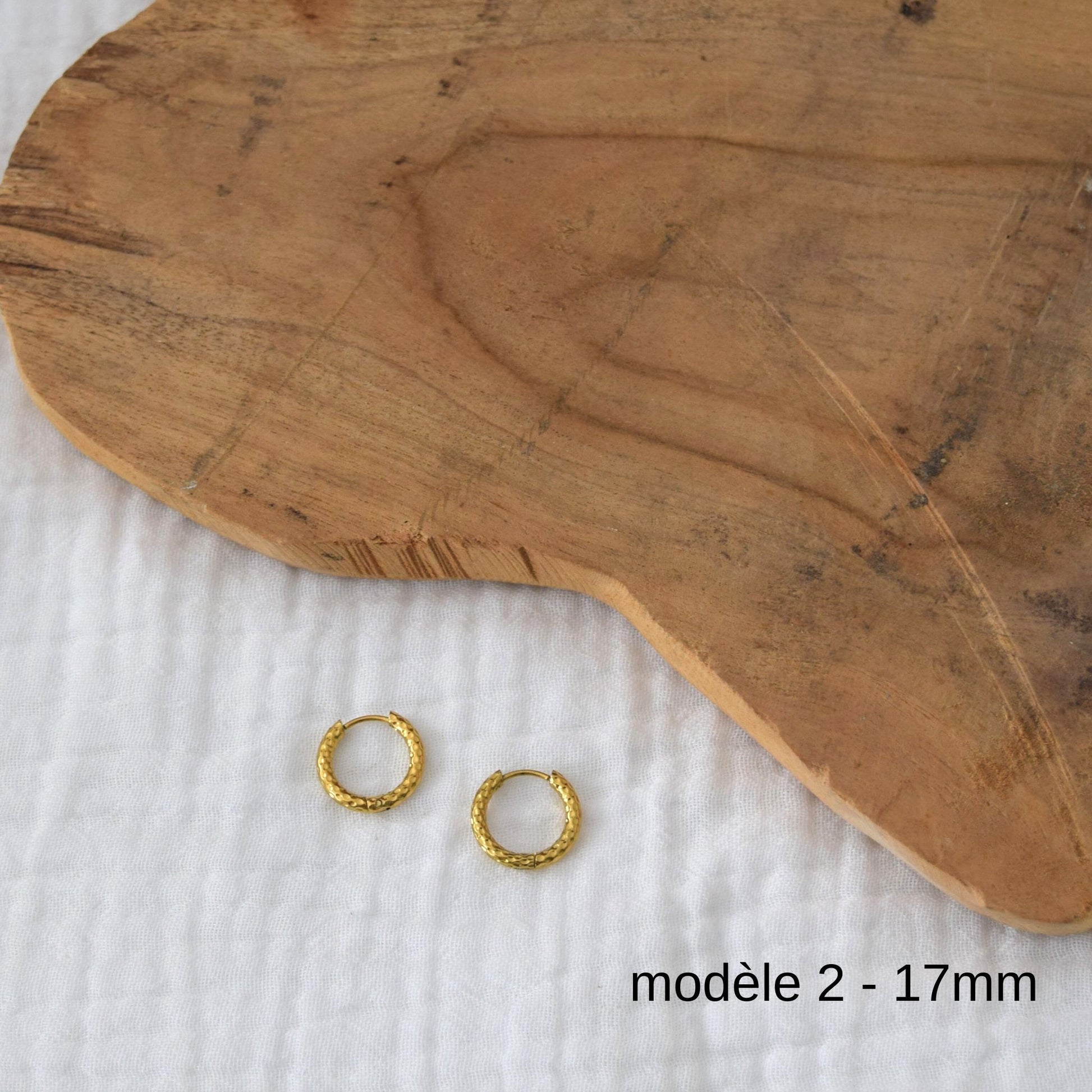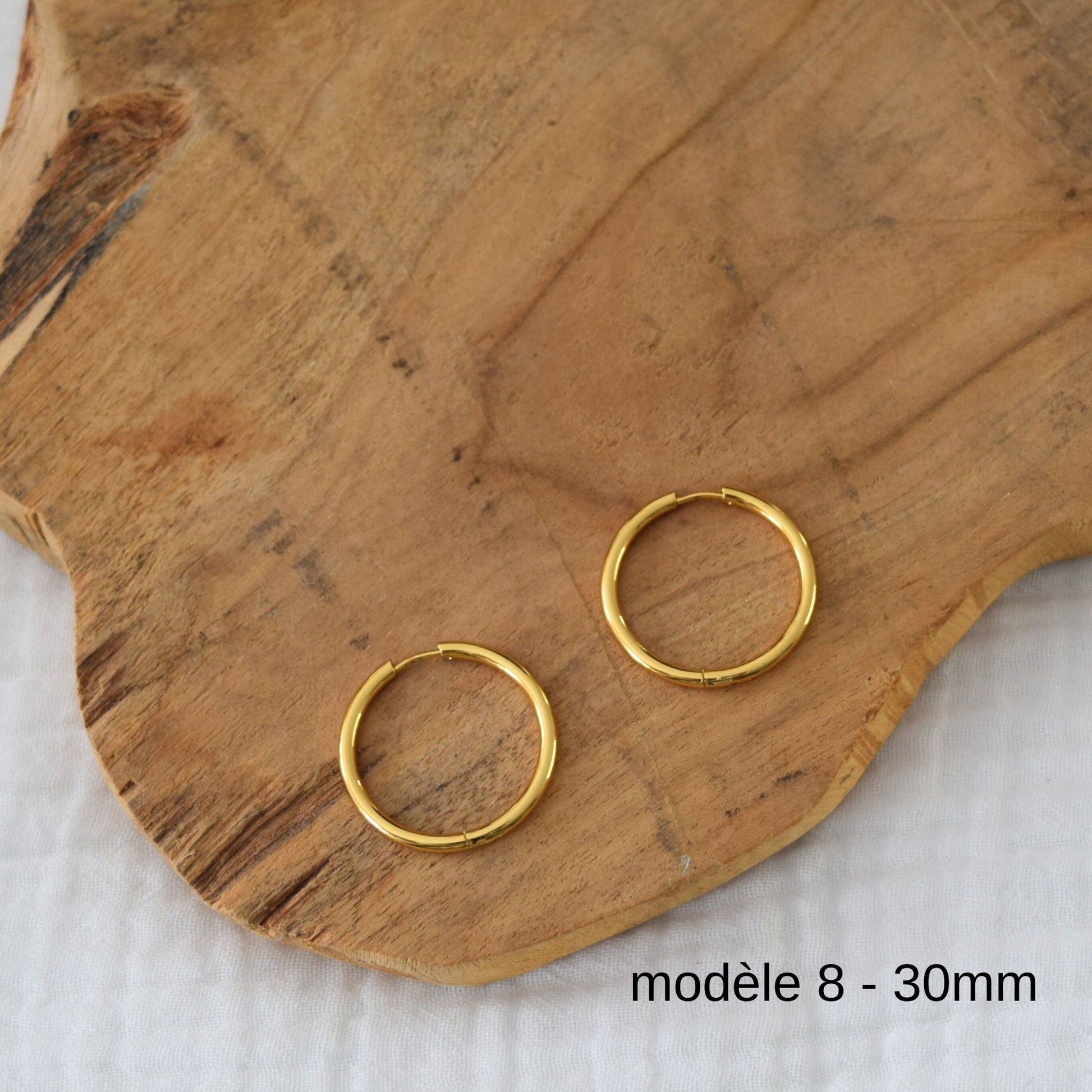 Sélectionnez le modèle d'anneau créole que vous souhaitez, vous pouvez ajouter des pampilles dans le bar à boucles pour apporter une touche de fun à vos oreilles